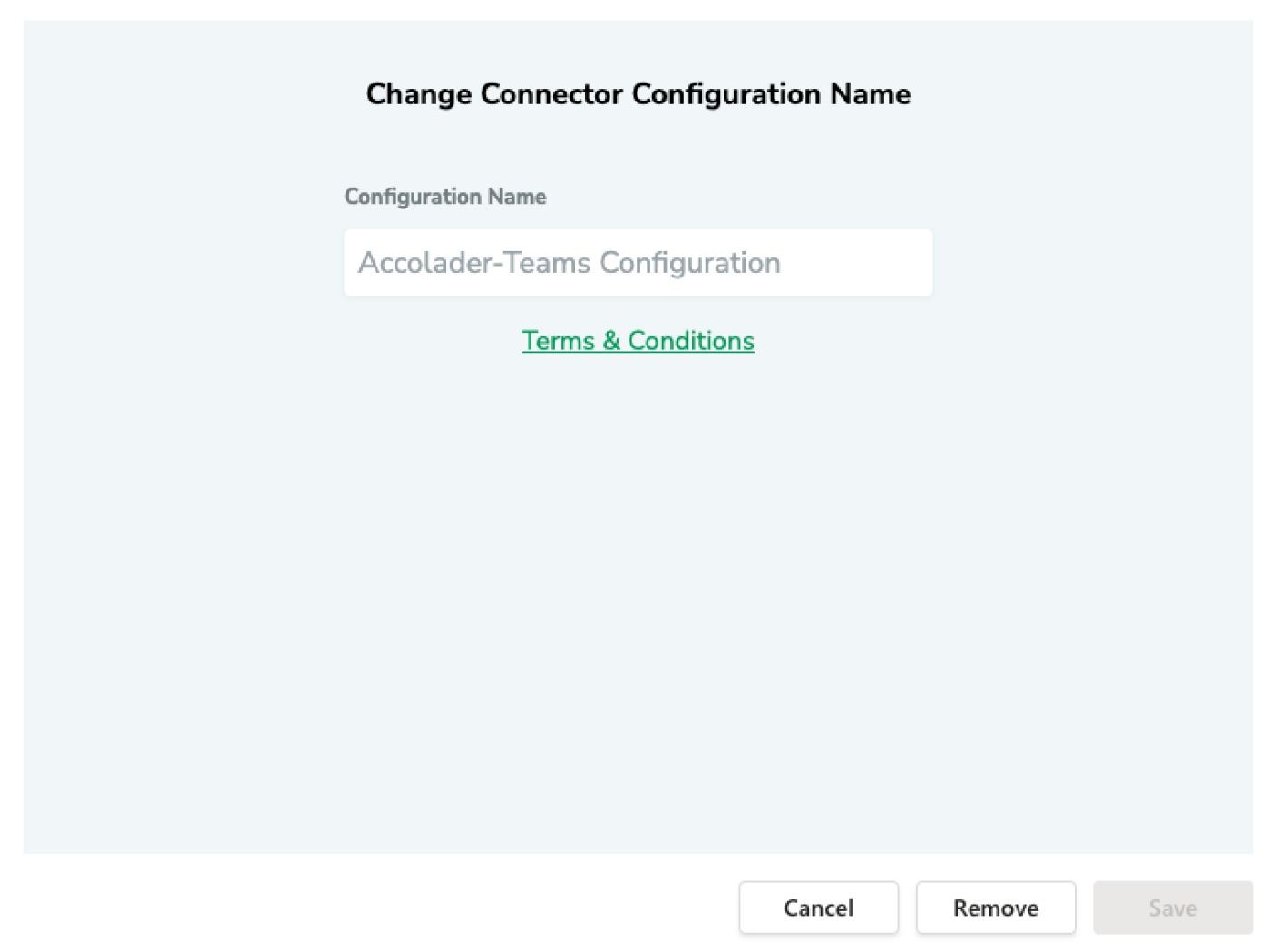 Filling out the field and selecting Save will update the name of the Accolader configuration.